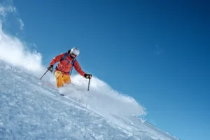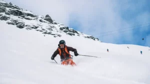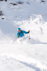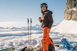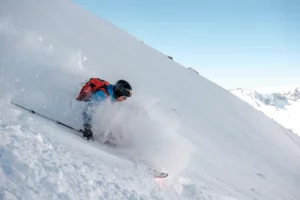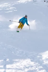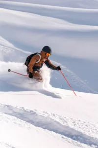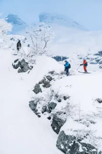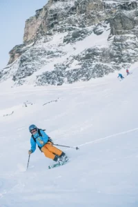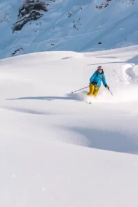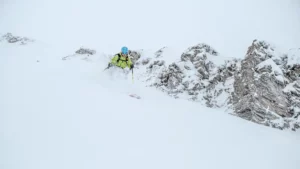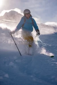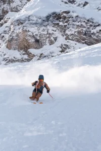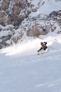 Bei Camp 1 wird das skifahrerische Level „gemischt“ sein. D.h., deine Skitechnik muss nicht perfekt sein, aber bei guten Schneebedingungen solltest du im Tiefschnee zurechtkommen.