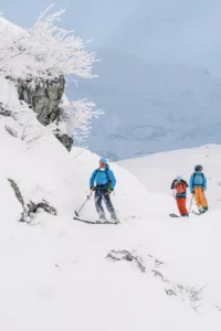 Bei beiden Camps sind Aufstiege selten und kurz. Im Einzelfall und nach Absprache bis max. eine Stunde. Du benötigst ausreichend Kondition für ganztägiges Tiefschneefahren.