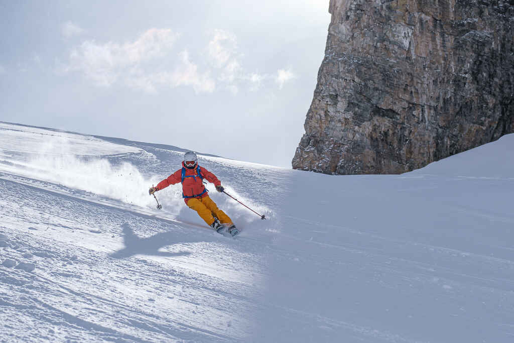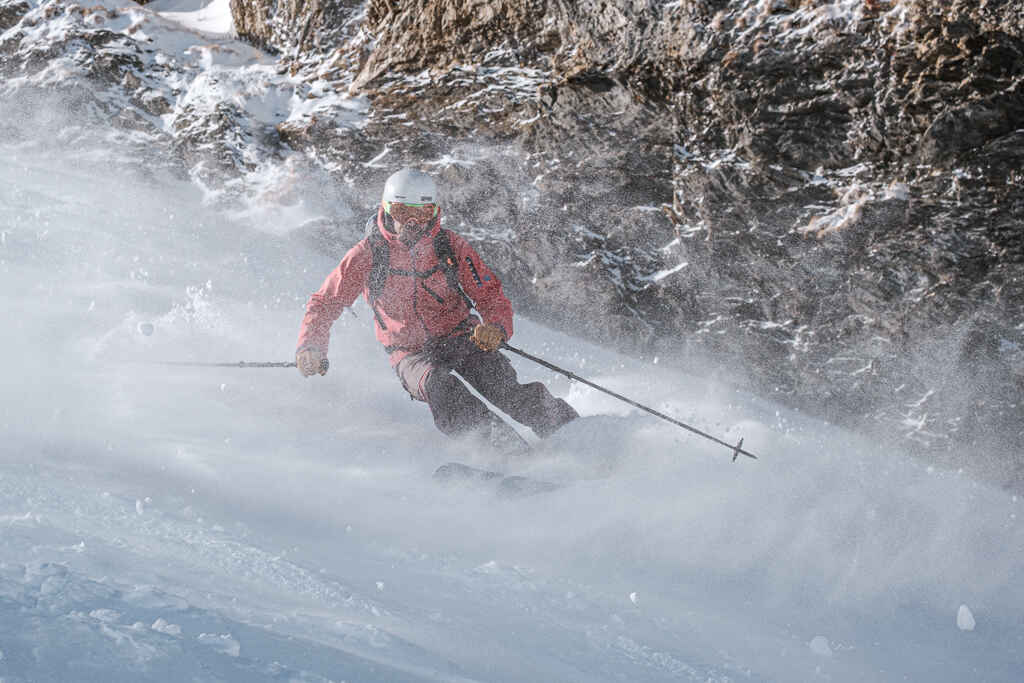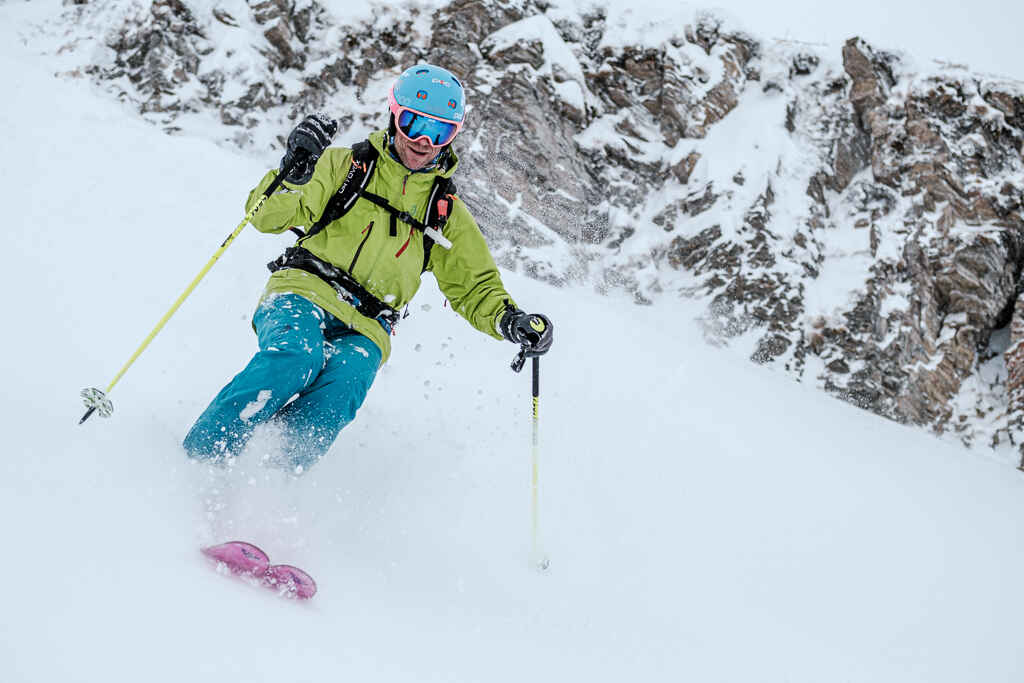 Die Inhalte der Freeride-Camps sind die Vermittlung von Skitechnik, dem richtigen Verhalten im Gelände und vor allem: viel Tiefschneefahren!