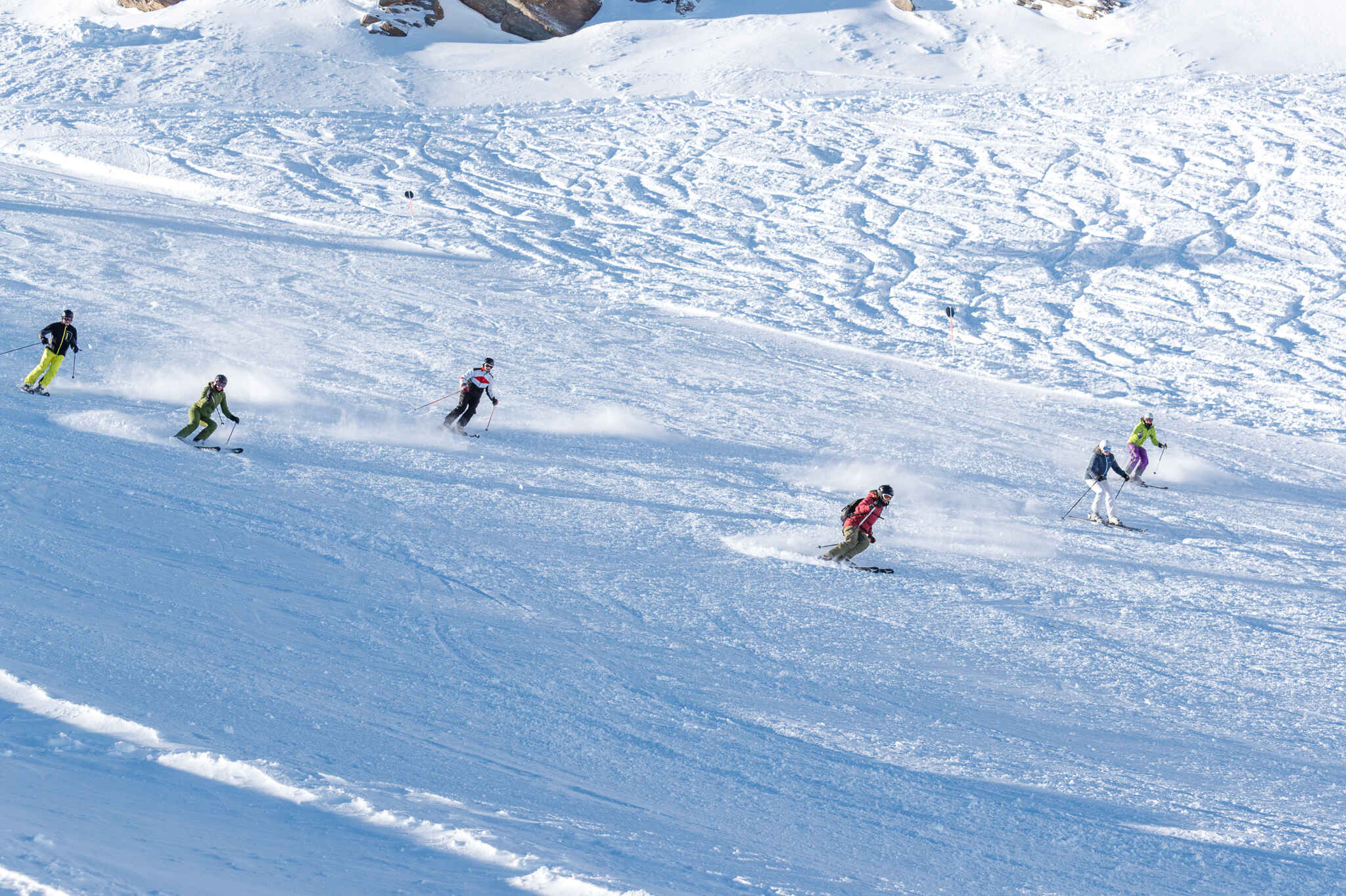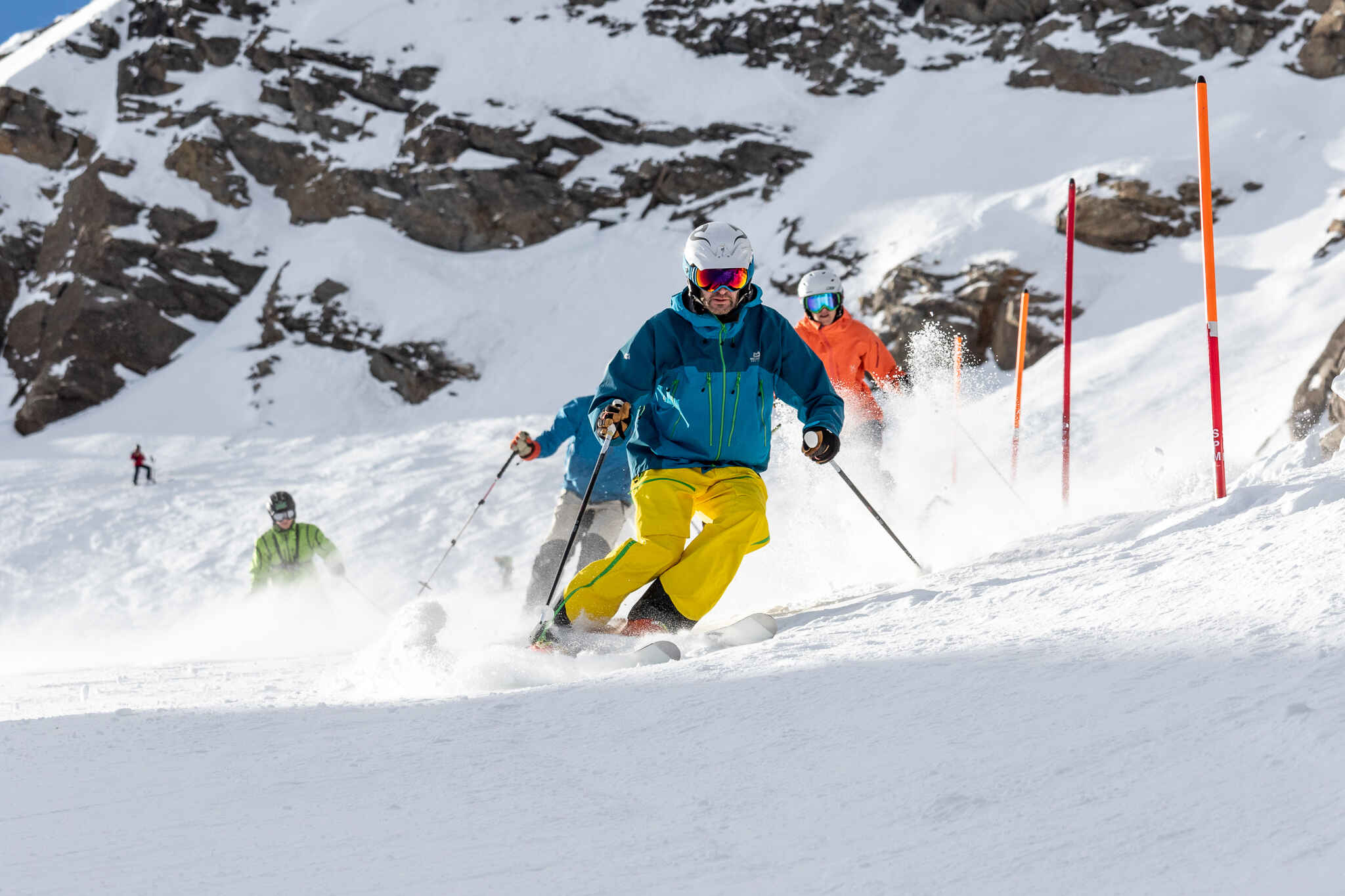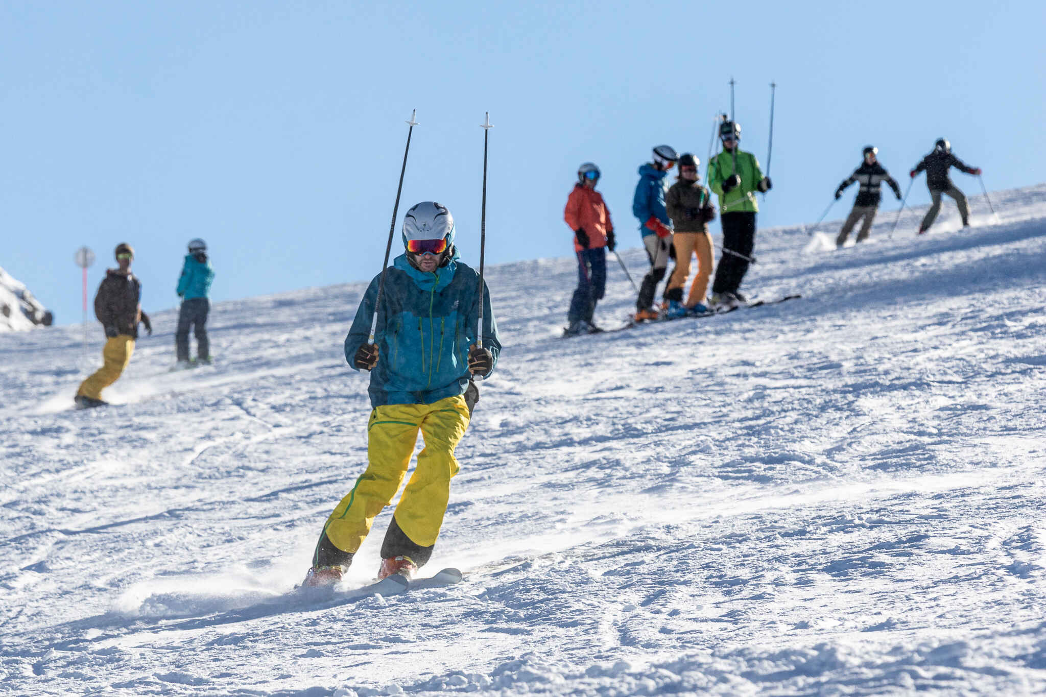 Beim Skitechnik-Training bieten wir eine Kursgruppe mit maximal acht Teilnehmenden an. Du wirst deine Skitechnik in jedem Gelände verbessern, aber mit Schwerpunkt präparierte Skipiste.